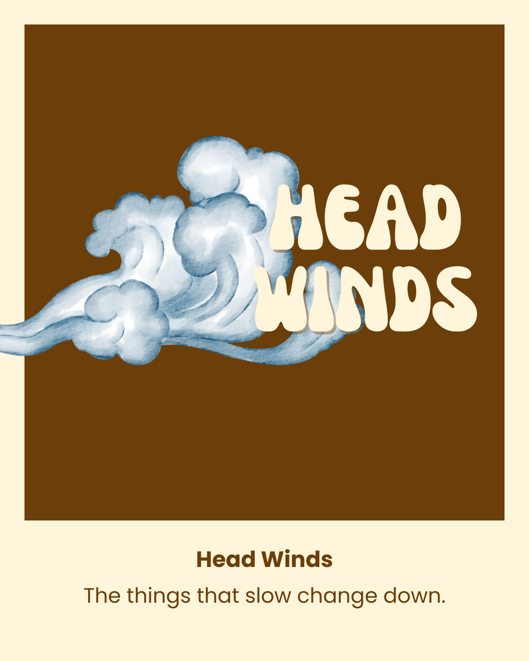 Head winds are things that signal you might want to slow things down. This could be good or bad. Perhaps the partner you want to work with is not ready to take on a new project, or the funding you want is not there yet.