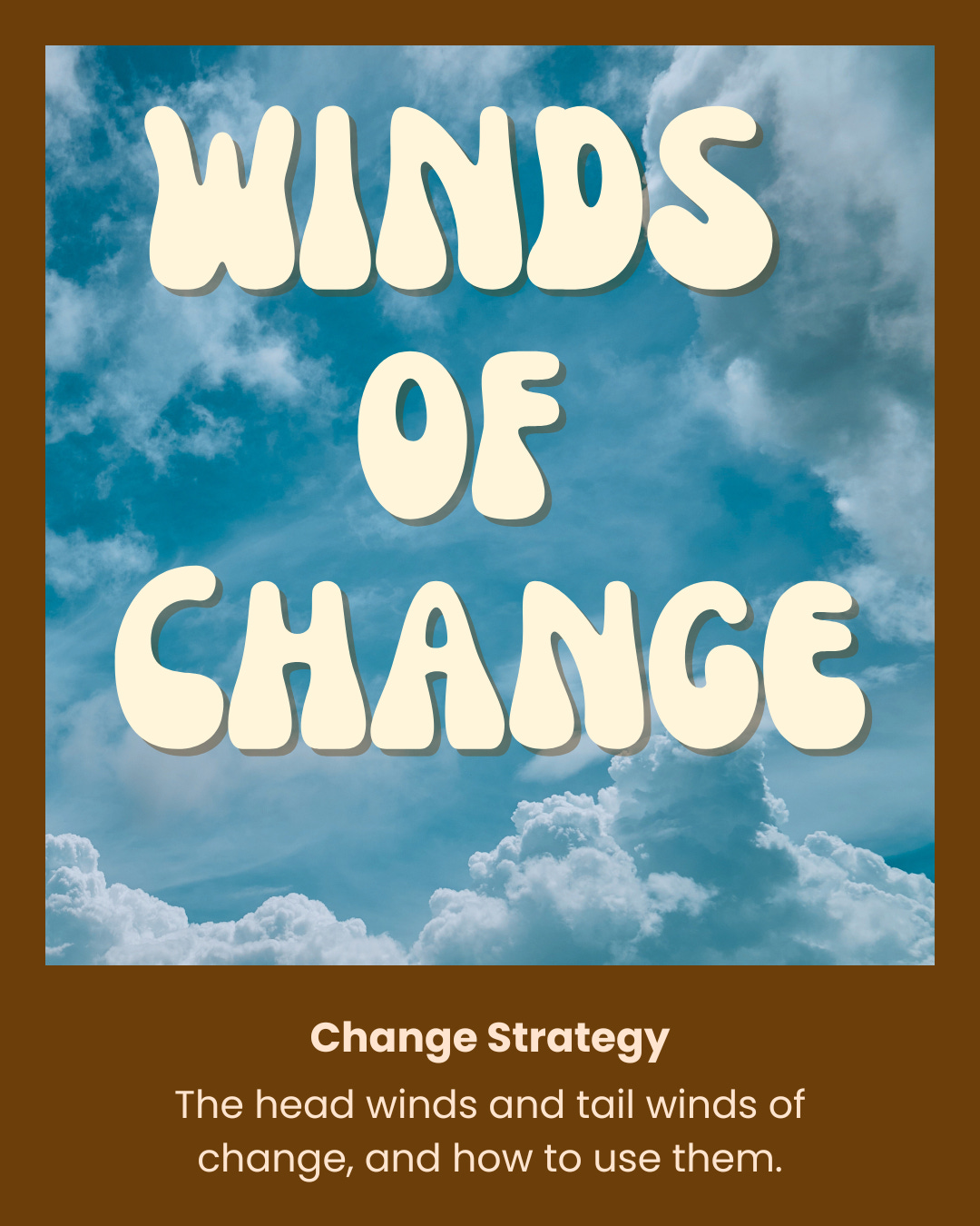 The winds of change are constant - tail winds push you forward and head winds create more resistance to moving forward. These winds are neither or good nor bad and represent a metaphor for how we might look at bringing in new things to our lives.